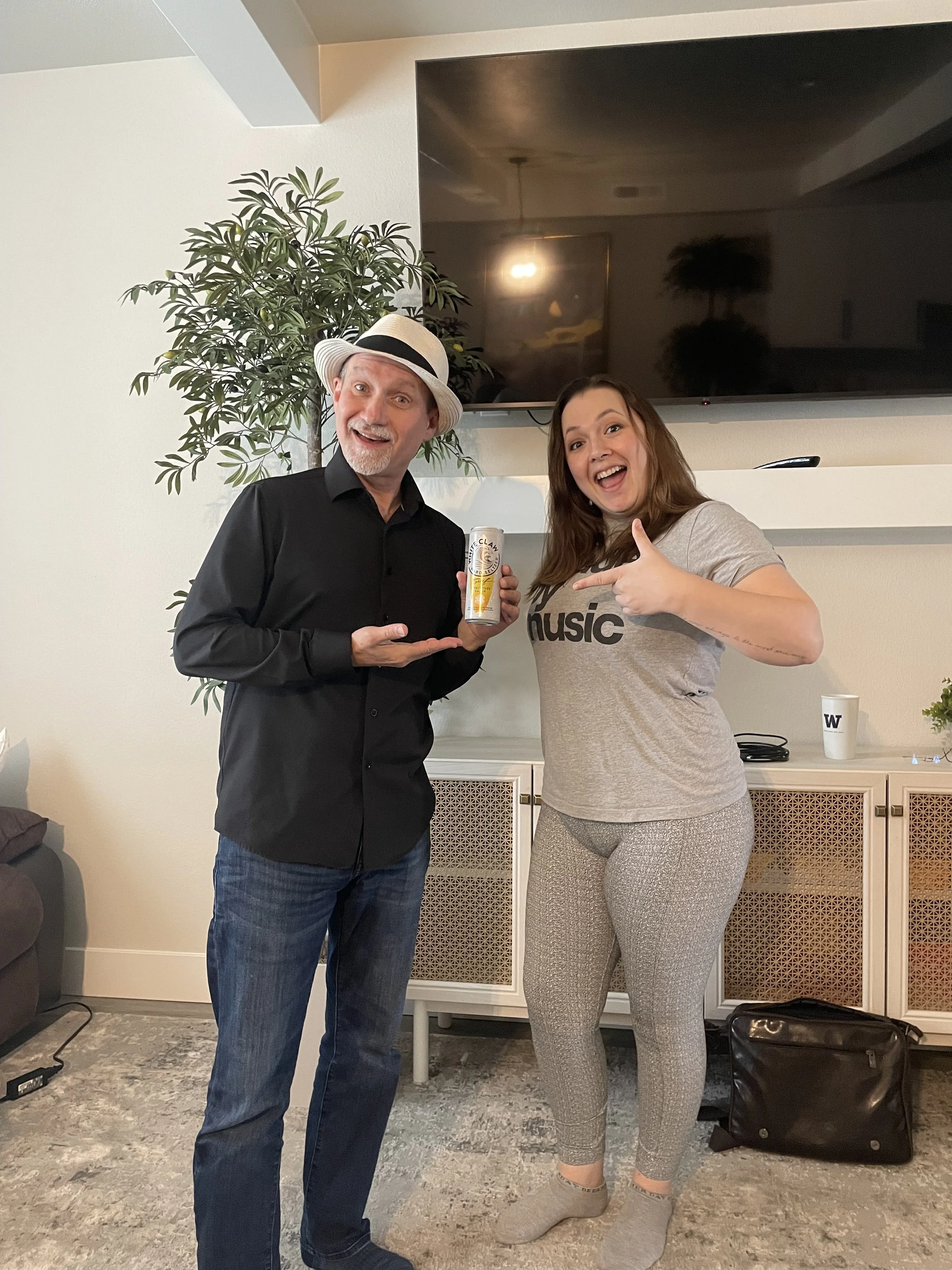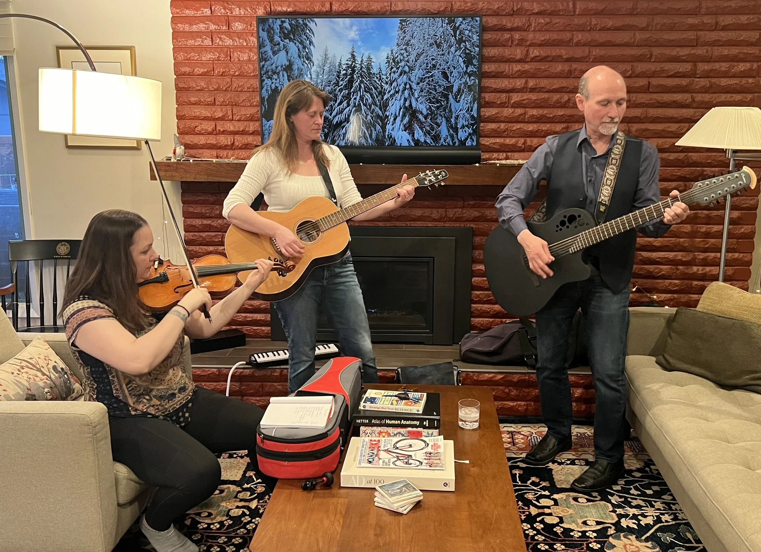 We are an acoustic trio from Seattle on two guitars and a fiddle. Only one of us has a degree in music.